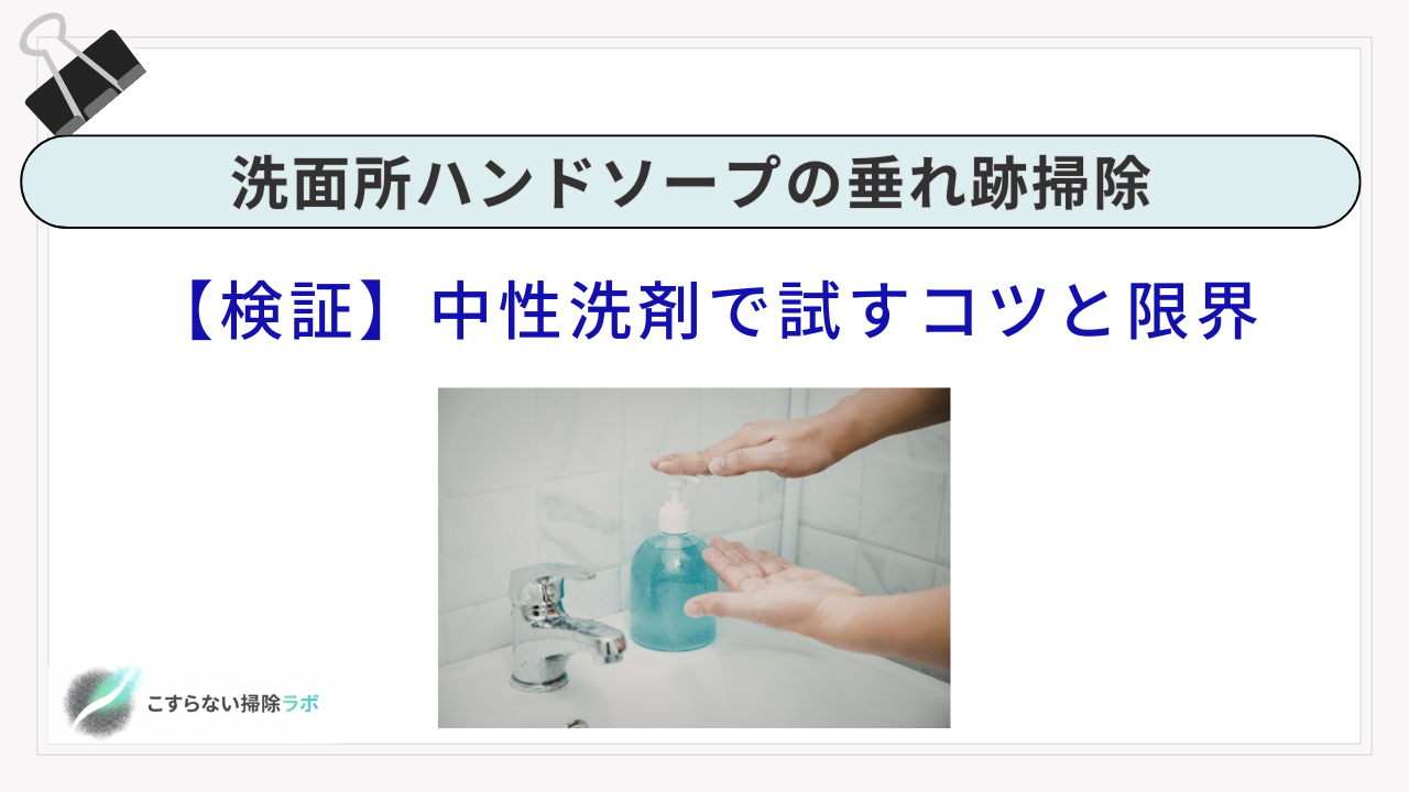 - 洗面所ハンドソープの垂れ跡掃除を中性洗剤で再現できる手順に落とし込める