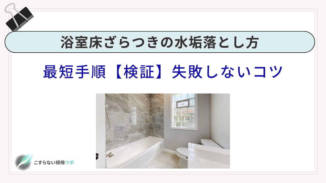 私は日本在住の30代で、掃除は「やり直しを減らす」手順化が好きです。床のざらつきは、触るたびに気になるのに、こすっても戻ってくることが多い場所。だからこそ、洗剤/道具を同条件(放置時間/擦り回数)で検証し手順化して、あなたの浴室に合う最短ルートを作りましょう。