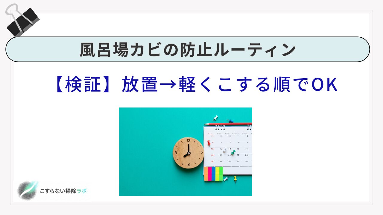 - 「風呂場 カビ 防止 ルーティン」を、毎日・週1・月1の負荷で組み立てられる